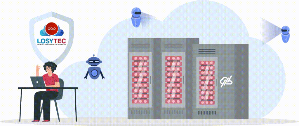 Proveemos un espacio en nuestro Storage Center Zeus, ubicado en las instalaciones de Losytec con la capacidad contratada. Sistema flexible donde nos adaptamos a cualquier tipo de nube.